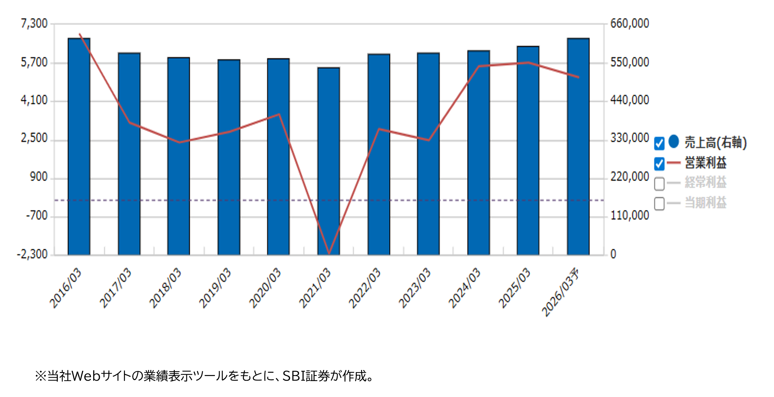 今期は売上高6,200億円(前期比3.3%増)と増収ですが、営業利益51億円(同11%減)、経常利益60億円(同14%減)、純利益72億円(同2%減)と減益となる見通しです。今期(26.3期)から、未承認薬の導入支援を行う製薬事業がスタートし、研究開発費の計上が減益見通しの主因となった格好です。当面は営業利益を押し下げる前提で、長期的価値の向上を目指しています。