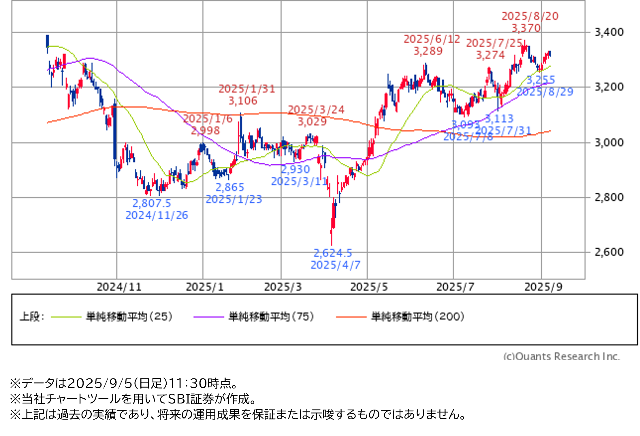 会社予想1株配当金175円、9/4終値3,324円から計算される配当利回りは5.26%と東証プライム市場の予想配当利回り2.47%を2倍超上回る「高配当利回り」が期待されています。