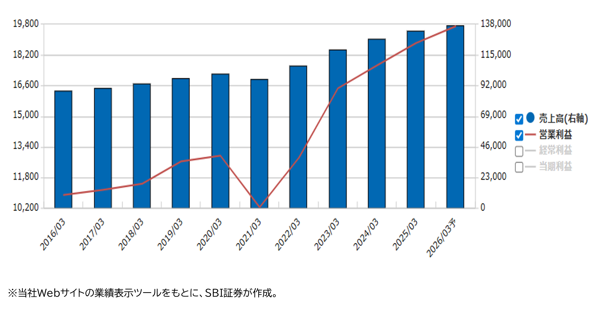 業績は好調。新型コロナ流行の影響が出た21.3期以降、22.3期から25.3期まで4期連続の増収増益となり、最高収益を更新しています。