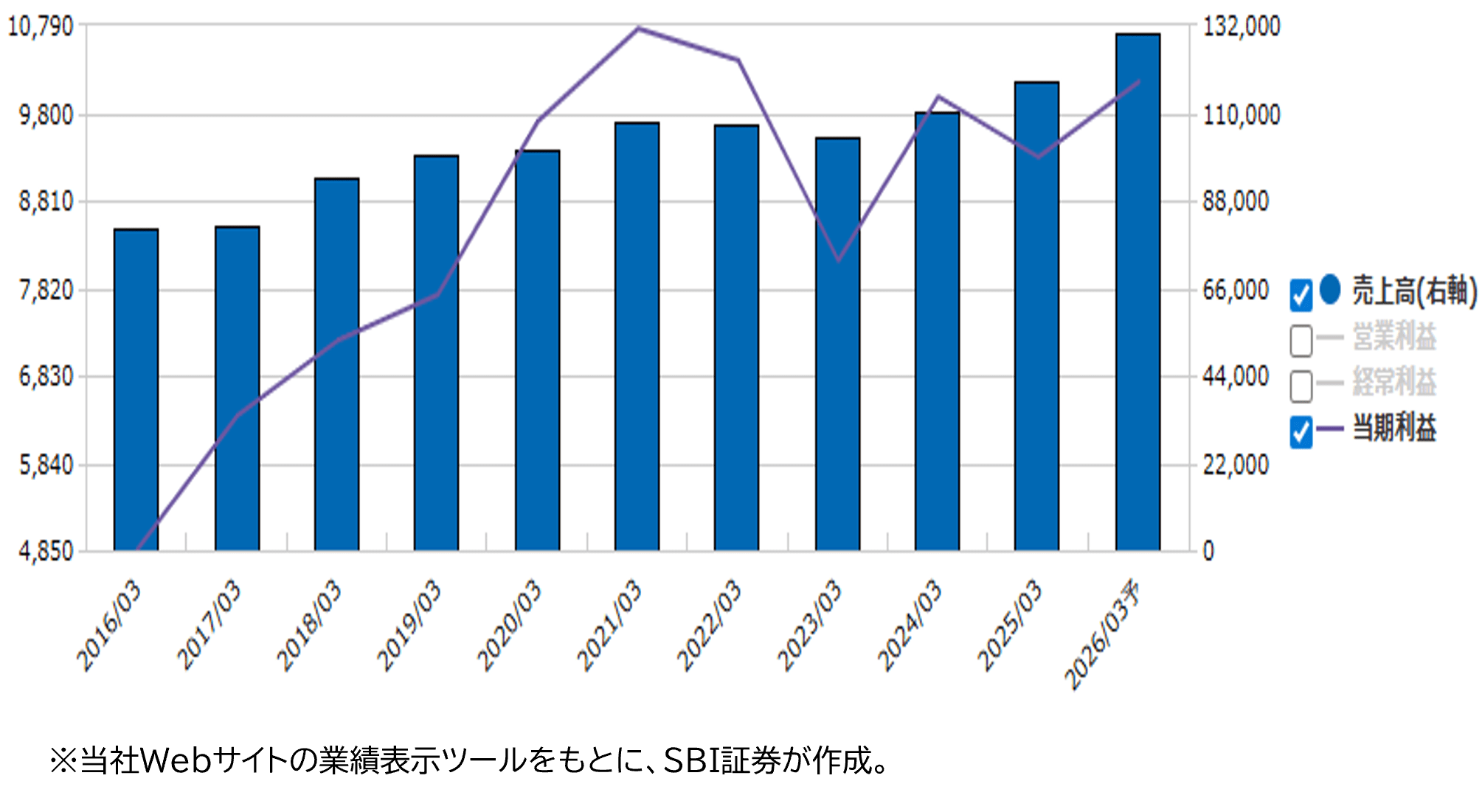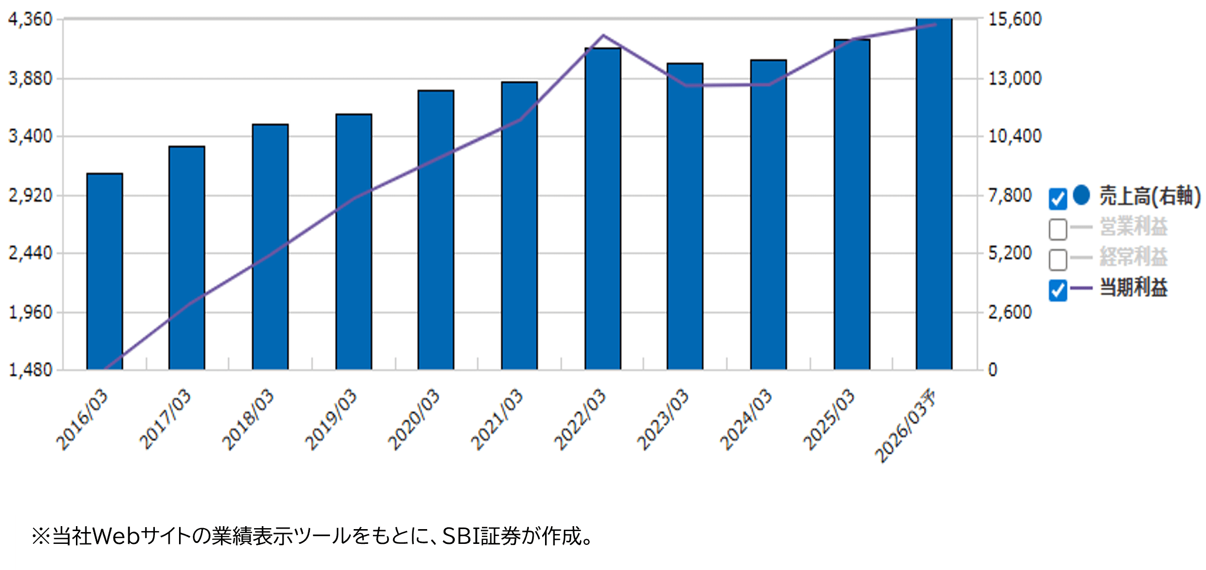 26.3期の会社計画では、売上高155億円(前期比5%増)、営業利益66億円(同8%増)と増収増益を見込んでいます。