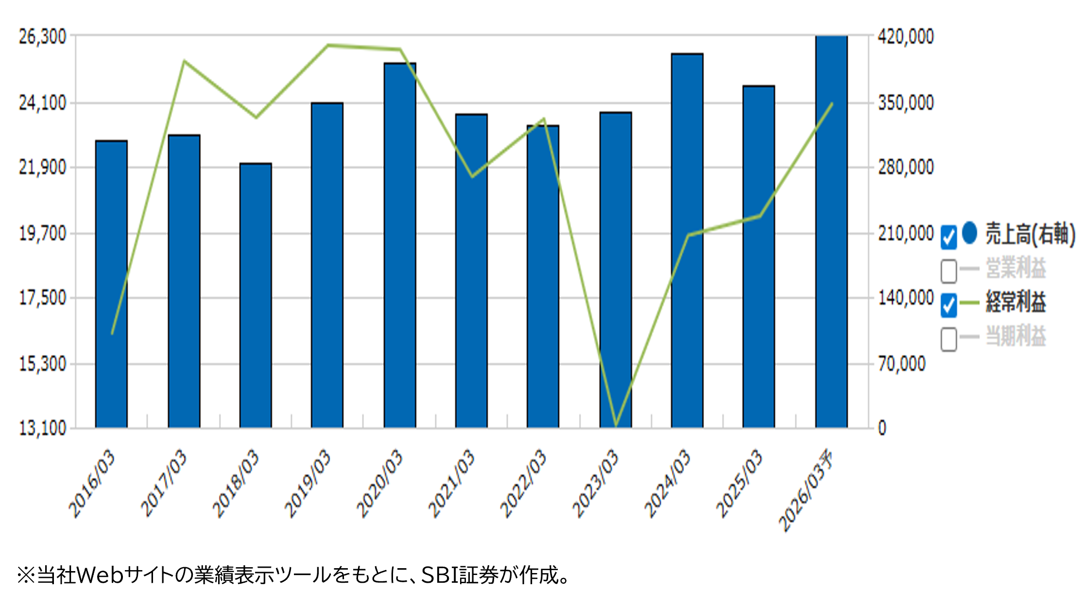 こうした中同社の26.3期1Qは売上高1,526億円(前年同期比0.5%増)、経常利益94億円(同3.2%増)と増収増益でした。
