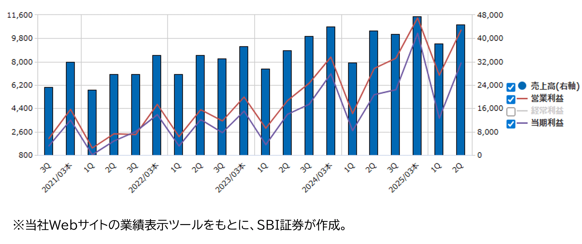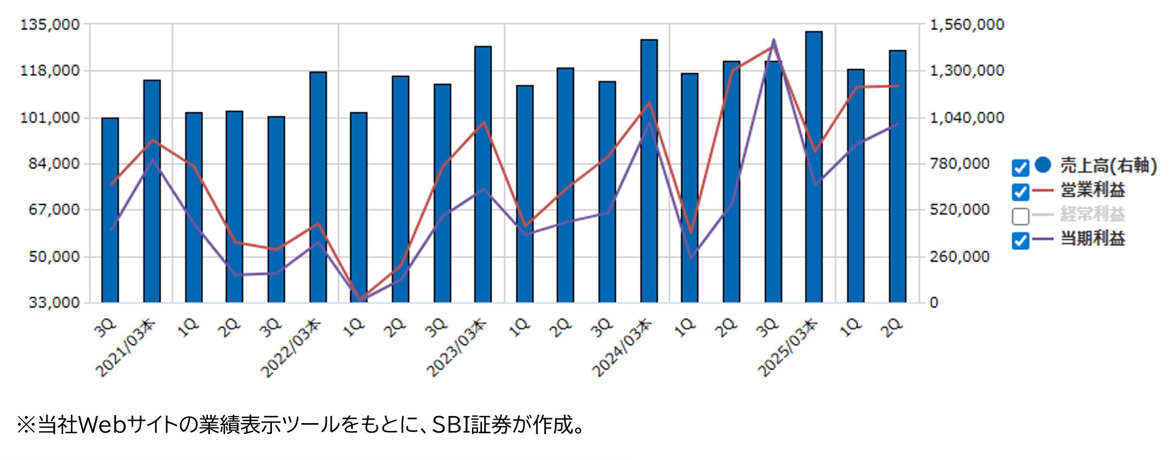 2025年10月31日発表の第2四半期決算(4~9月期)は以下の通りです。