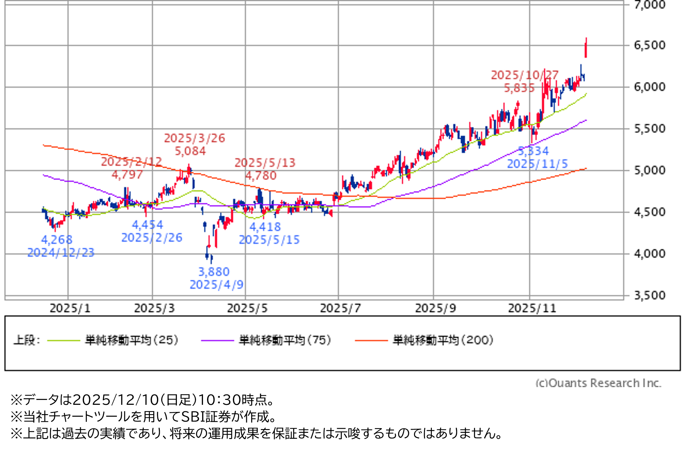 直近半年の株価推移は、右肩上がりです。金相場の上昇から連想され、連れ高となった面もあると考えられます。