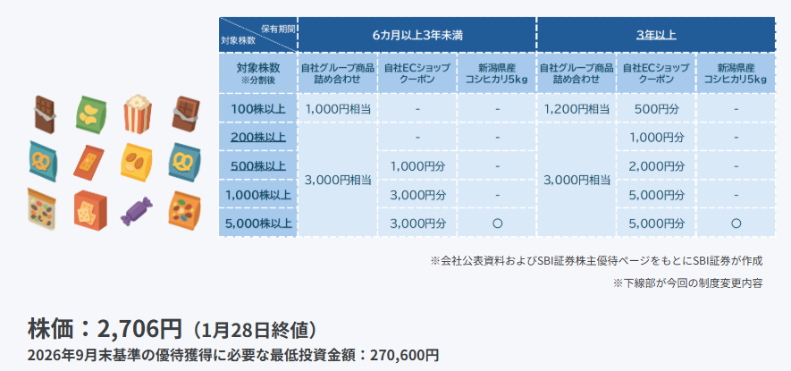 その内容は、対象株数区分および長期保有特典の新設、ならびに優待品の追加です!